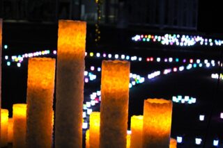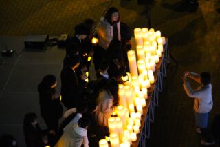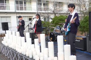 八木山地区まちづくり研究会様のご協力を得ながら生徒会が中心となって運営を行いました。中庭に約500個ものLEDライトやランタンを並べて、本校キャラクターのJにゃんを描きました。美しいイルミネーションに彩られた中庭の特設ステージでは、軽音楽部や吹奏楽部が演奏を披露しました。イルミネーションを眺めながら、素敵な音楽を楽しむ贅沢な時間となりました。