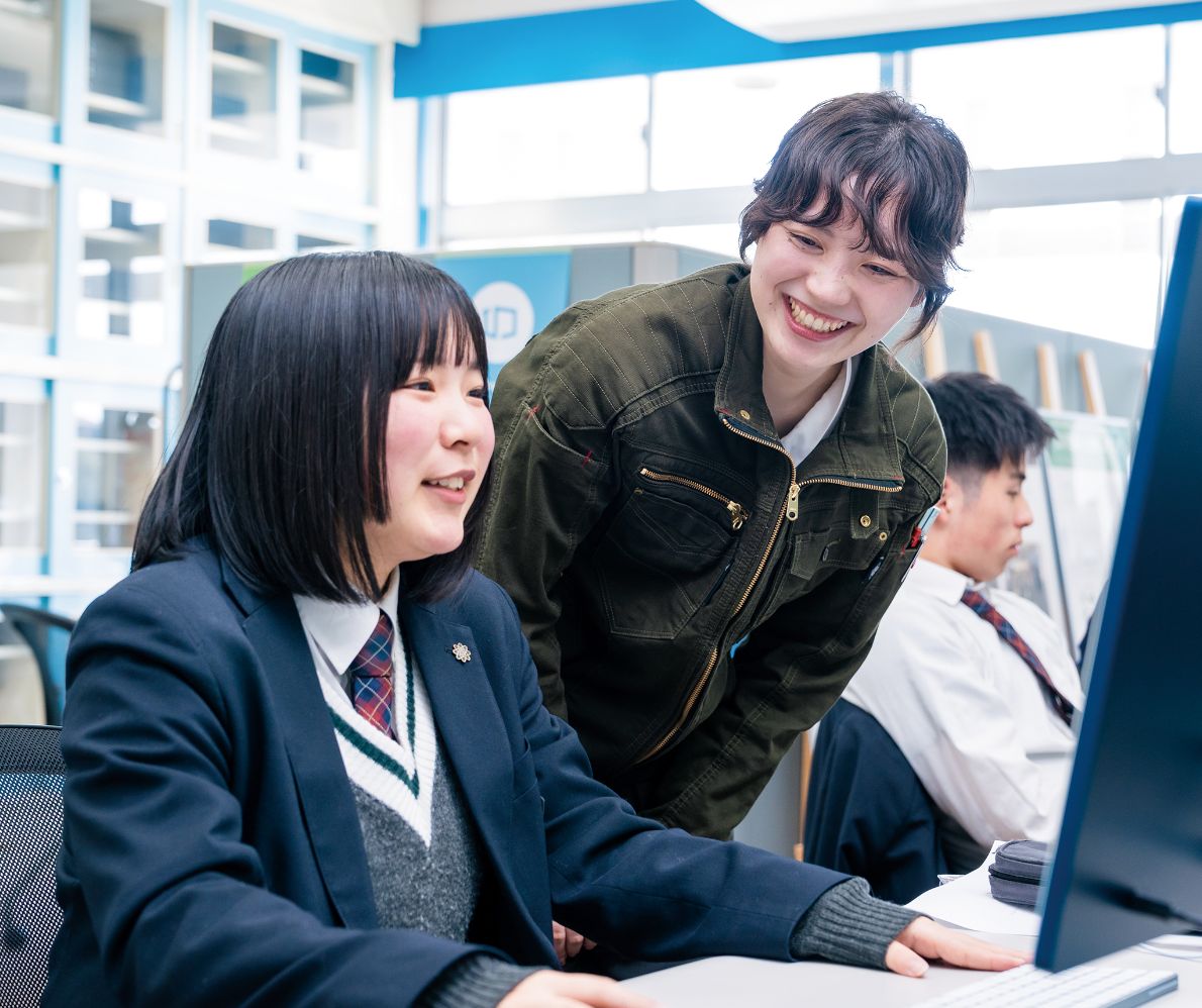 やりがいを持ってデザインを学んでいます大学の研究室で学べるアカデミックインターンシップや科学技術科ならではの専門科目に惹かれて入学しました。課題研究の授業の「和菓子のパッケージデザイン」では、先生方からアドバイスをいただきながら作品ができあがっていく過程で成長を感じることができました。