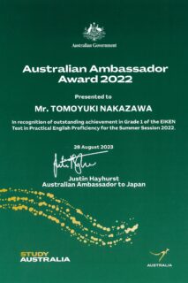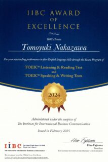 中沢先生は2022年には英検CSEスコアが最も高かった教員に贈られるオーストラリア大使賞(1級)を受賞し、2024年度のTOEICでも成績優秀者として表彰されていました。生徒達も刺激を受け、資格試験に前向きに取り組んでいます。