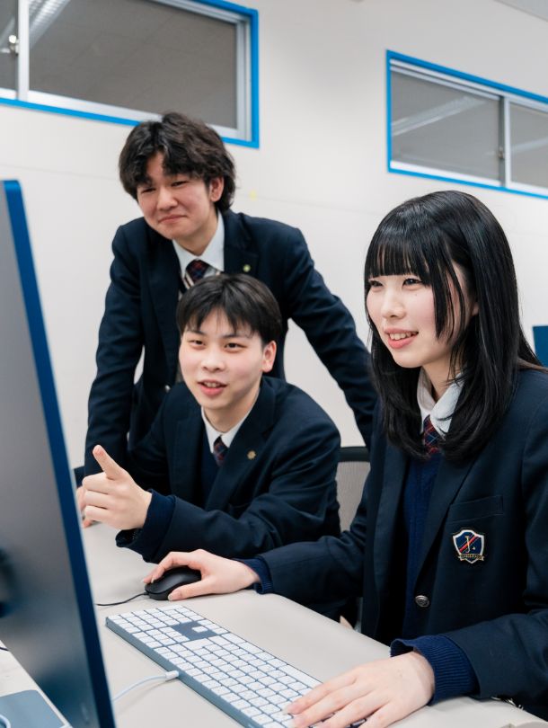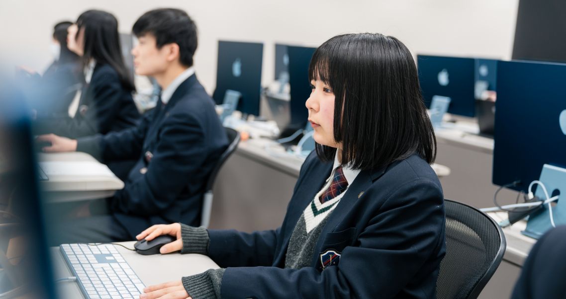 興味を深めよう高校教育におけるICTの活用は、必要な情報に素早くアクセスできる効率性はもちろん、興味関心のあることを深めたり、新しい感性や情報に触れるなど、最も多感と言える時期に自発的に自分の視野を広げ興味を掘り下げる点に大きなメリットがあります。情報の扱い方を踏まえ、授業を中心に活用しています。
