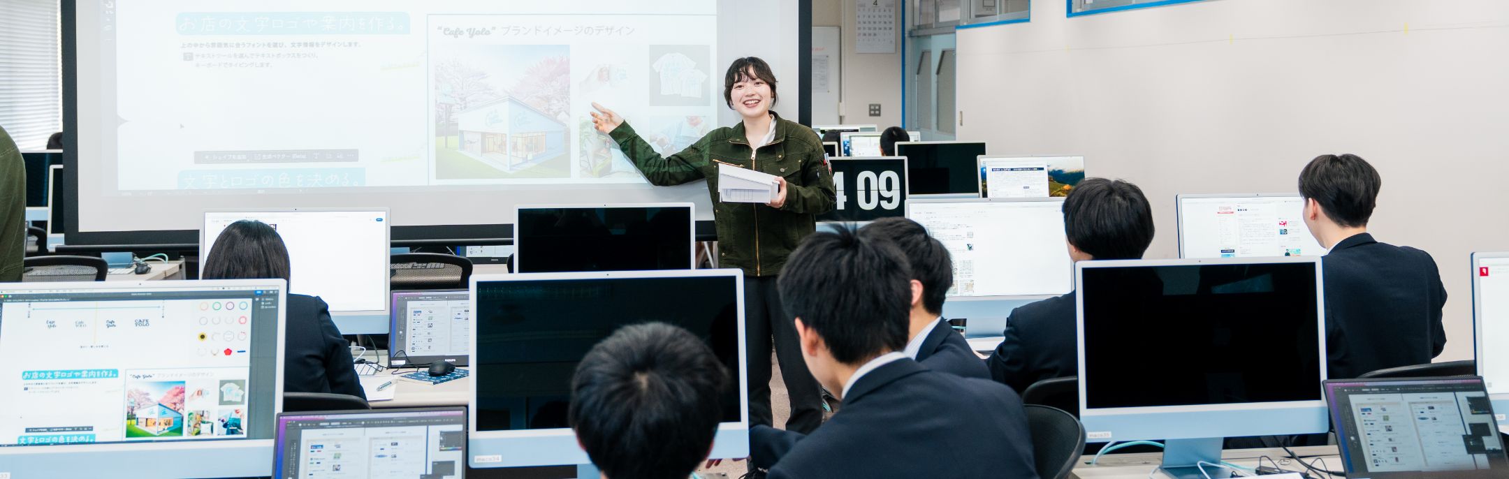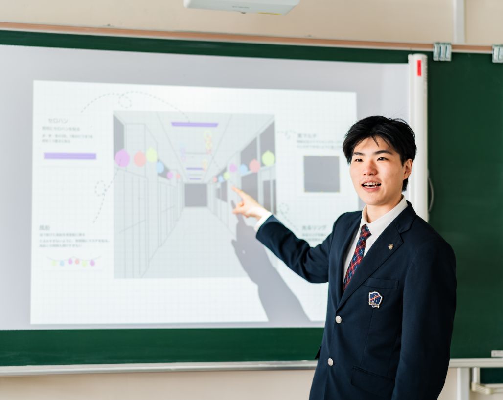 生徒の発表の場を増やす授業を数多く実施。タブレット端末や学内の設備を積極的に活用します。